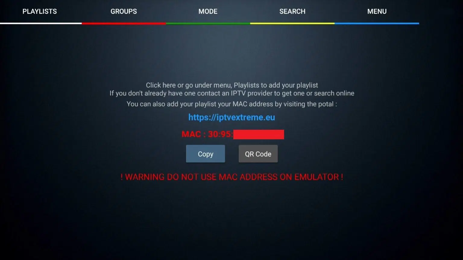 Step 1: Launch the app and note your MAC address displayed in the middle of the screen. Use this address on their website to link your playlist details with Xtream Codes.