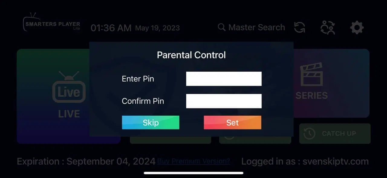 Step 3: You may be prompted to set a PIN code for the app. If this appears and you do not wish to set a child lock, simply select Skip.