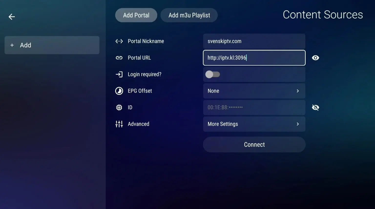 Step 2: Enter Portal Details; In the Portal Nickname field, type svenskiptv.com.. In the Portal URL field, input the link provided in the email you received.. If you haven’t placed an order yet, do so now to obtain your Box ID, which is located in the box’s settings or on its underside.