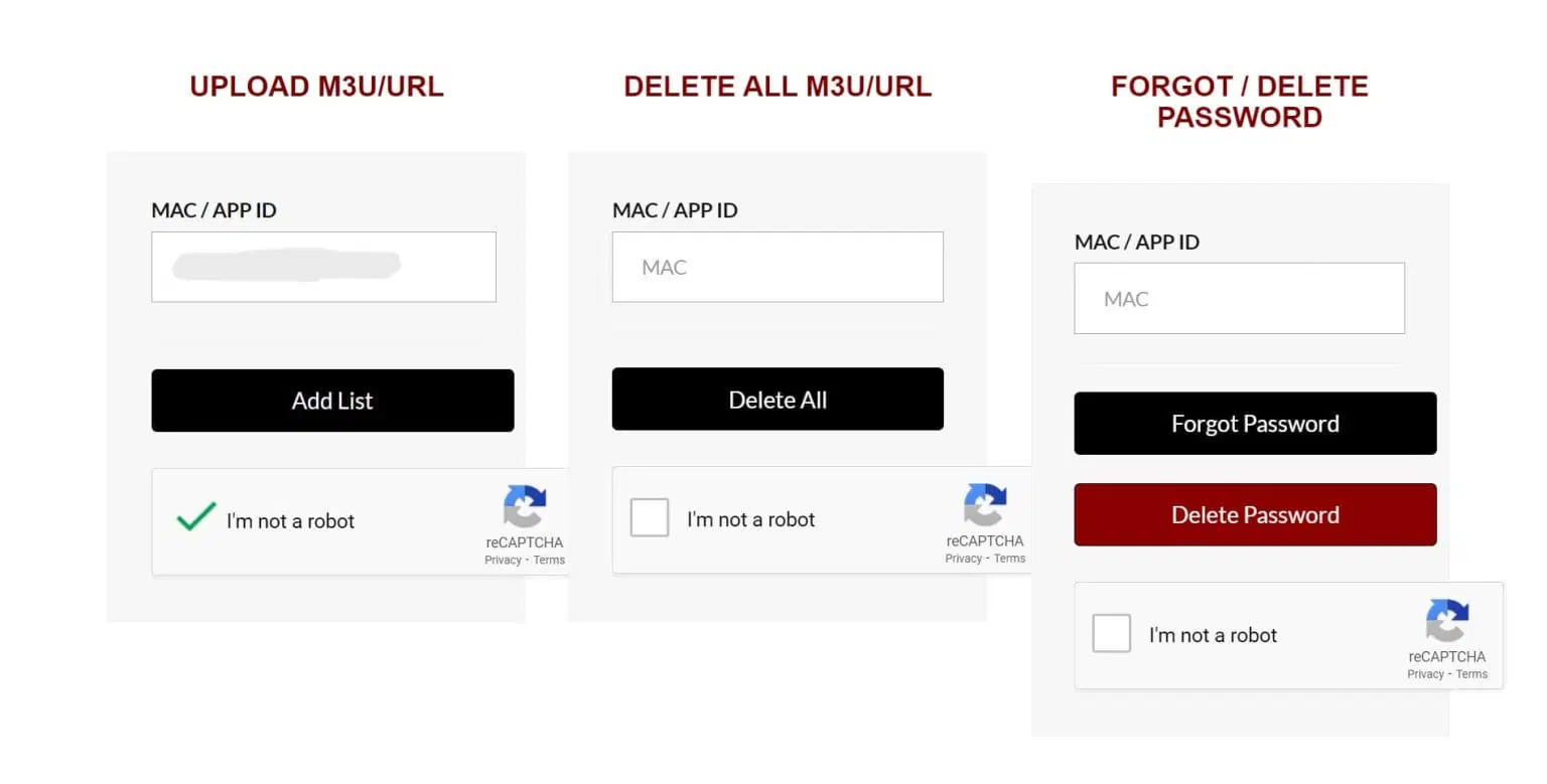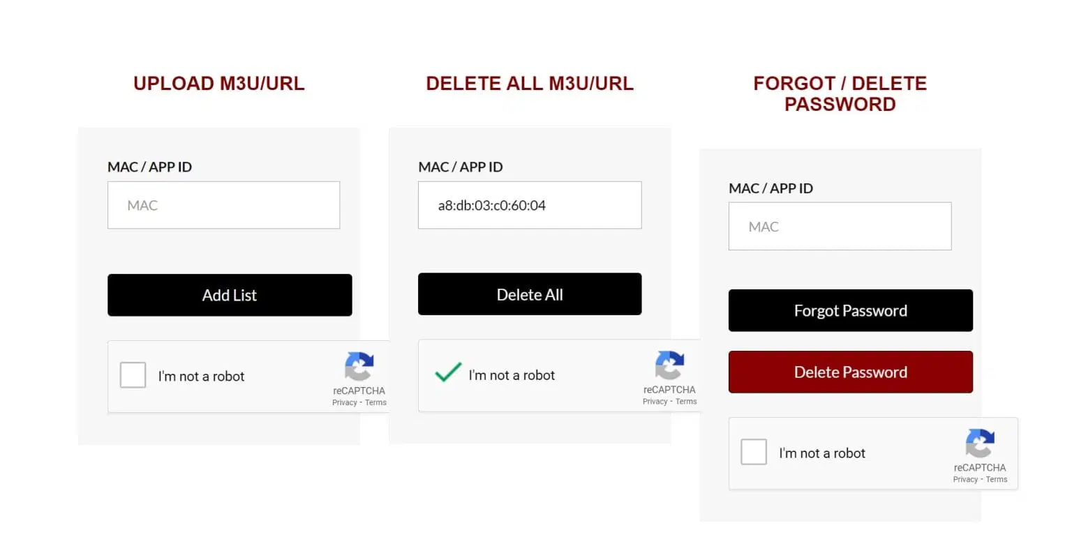 Step 2: Visit https://netiptv.eu/upload and enter your MAC address in the “Delete All M3U/URL” field. Check the “I’m not a robot” box and click “Delete All.”