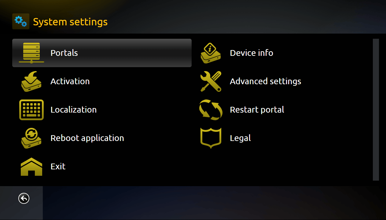 Step 3: Select Device Info to retrieve your Virtual MAC address. Make sure to note it down carefully and verify the spelling. Next, choose Embedded Portal to access the settings where you can add a portal URL. Select Portals to proceed.